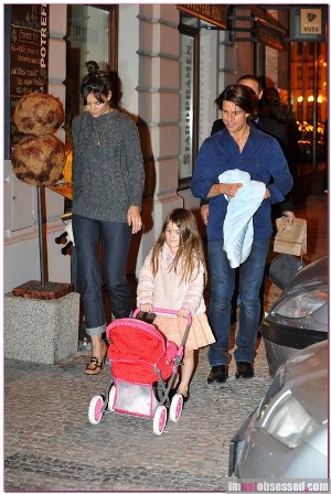 No se si el título de este post es muy acertado porque esta familia se caracteriza por su errático estilo. Katie Holmes tan pronto aparece radiante como vestida de cualquier manera, la mini-celebritie Suri nos asombra con sus tutús, tacones y otras prendas muy particulares y Tom Cruise no pasa de discreto, y en ocasiones también "mete la pata". Ahora la familia está pasando unos días en Praga, donde el actor busca localizaciones para la secuela de "Misión Imposible 4" que se rodará en esa ciudad.El actor salió a pasear con su mujer, Katie Holmes y la pequeña Suri, que lucía un conjunto rosa pálido que hacía juego con el cochecito de su muñeco. En cuanto a Katie, esta vez acierta con un pantalón en denim azul oscuro y un jersey grueso de lana gris y unos zapatos beis y marrón con taconazo. Tom vestía vaqueros y camisa azul por fuera. ¿Les das un aprobado en cuestión de estilismo?¿Qué nota les pondrías tú?