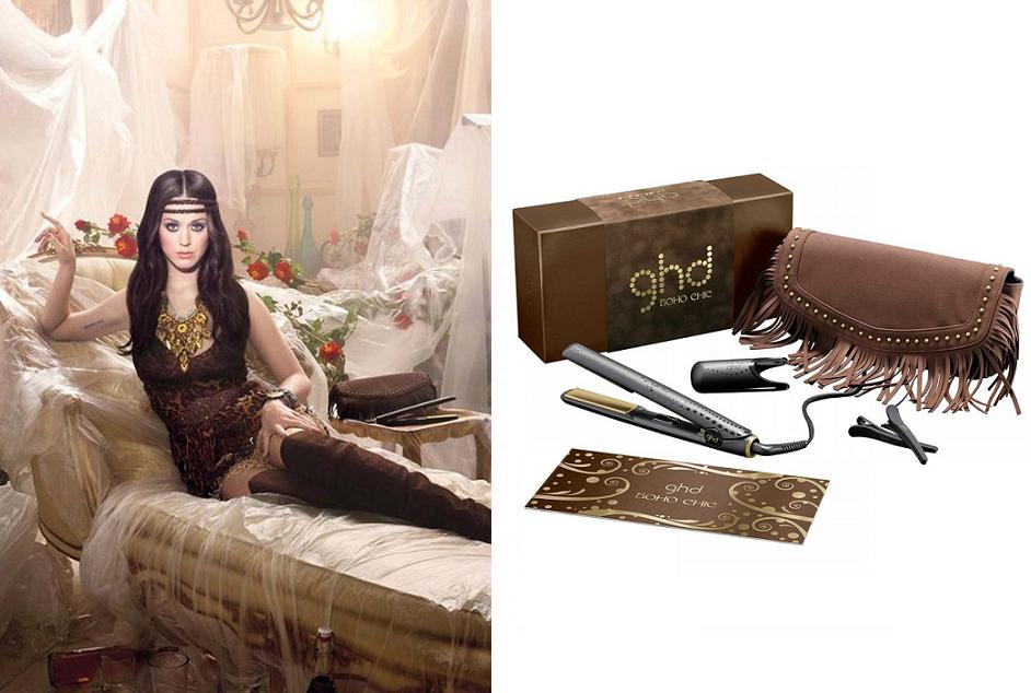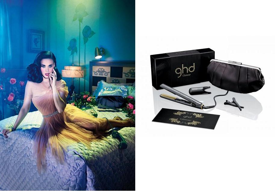 AÑOS 50: GLAMOURKaty se traslada a los años 50 y se presenta envuelta en ese halo de elegancia y sensualidad que rodeaba a las grandes estrellas de la época. Luciendo el peinado de grandes ondas propio de aquel momento y cubierta con un vestido de líneas vaporosas, la cantante ofrece una imagen que mezcla sensualidad e inocencia. Para conseguir este look romántico y sofisticado, ghd propone la Edición Limitada Glamour, que se presenta en un clutch de color negro satinado en honor a tanta distinción.