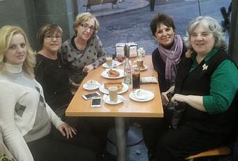 Y llegó el día de la kedada, fue el pasado jueves 18 por la tarde. A última hora faltaron algunas que no pudieron, seguro que a la próxima se apuntan.Para las que no nos ponéis cara todavía (bueno, la mía si que ya está muy vista), voy a empezar por la izquierda de la foto según miramos:Simona de BicaricaIsabel de IherbaLola de Laboreando voyYoBeatriz de El ajuar de BeatrizNi os podéis imaginar lo que pudimos cotorrear, desde las 5 hasta las 9 y no paramos.Aunque llevaron la voz cantante las veteranas del grupo: Isabel y Beatriz que nos enseñaron muchísimo de su experiencia en la red, las demás estuvimos encantadas de aprender de ellas, también metimos baza (una más que otras).Hicimos un intercambio de regalos, aquí los podéis ver todos juntos: