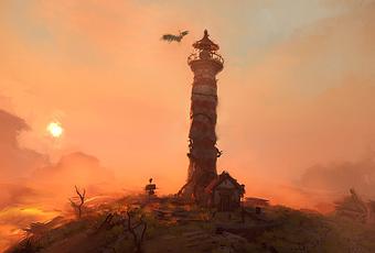 Al comenzar, vemos a Twig y a una bandada de pájaros siendo perseguidos por lo que sus desarrolladores llaman The Wither, un enjambre parecido a abejas compuesto de una materia púrpura amenazante. Twig se desvía de su curso y aterriza con fuerza sobre el Faro, lo que activa su luz y ahuyenta la oscuridad. Muchos juegos empiezan con tutoriales, pero he visto muy pocos donde literalmente tu personaje aprende a caminar.