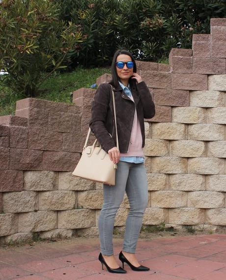 Jacket- Stradivarius ( winter sales). Sweater and denim shirt- Stradivarius ( new S/S 16). Jeans- Mango ( S/S16 new). Shoes- Local shop ( winter sales). Bag- Zara (old).
