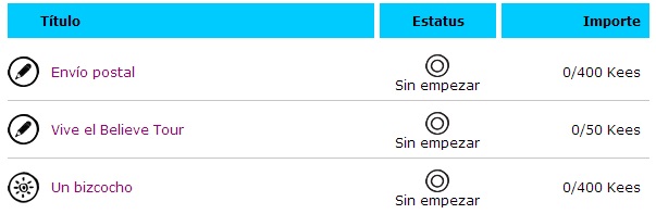 Ellos dividen las secciones en:- Destacados (los premios que más nos gustan): Renault Twizy Urban 45 con 1.300.000 de Kees (sí sí un coche! xDDD), tarjeta de regalo de 30€ en cualquier marca (al menos intentan conseguirla) con 10.800 Kees, tarjeta de regalo para el musical del Rey León con 21.400 Kees, cheque KEECOMO (de 9€ para muchos restaurantes) con 2.700 Kees...- Moda: tarjeta de regalo de 20€ para Sephora con 7.200 Kees, tarjeta de regalo de 30€ para Mango con 10.800 Kees, tarjeta regalo de 30€ para cualquier tienda de moda también 10.800 Kees...- Ocio: Juegos para la play 2, entradas de cine con 1.800 Kees, Wii U (pack básico) con 84.000 Kees, Spotify Premium 1 mes con 1.900 Kees- Tecnología: Cámara de fotos Réflex Canon EOS 550D con 219.200 Kees, tarjeta regalo de 20€ para Media Markt con 7.200 Kees, PS Vita 3G/Wi-fi con 89.600 Kees, Ipod nano 16GB con 50.000 Kees, etc- Deporte: Camisetas de jugadores, PLAN B top rural (noche y desayuno para 2 personas) con 17.600 Kees...Y muchísimos más que no he puesto ¿os parecen suficientes? jijijiSi os parece una web divertida y que os puede gustar os invito a que participéis, a mi personalmente me parece divertidísimo porque soy una persona muy inquieta y me gusta hacer cosas siempre xD, así que si os interesa os dejo un enlace AQUÍ, a mi si en esos momentos dan puntos también saldré ganando, pero si preferís hacerlo desde otra persona no pasa nada (que nadie se sienta obligada jajaja)Un beso enorme ¡disfrutad del viernes y del fin de semana!