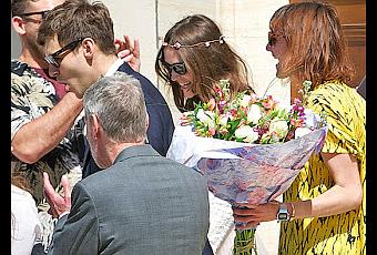 Según comentan los invitados, la ceremonia fue muy emotiva y los novios irradiaban felicidad, salieron del Ayuntamiento entre aplausos y sonrisas y se montaron en un renault clio que seguramente los llevó a la finca de la actriz donde celebraron este día en compañía de sus familiares y amigos.