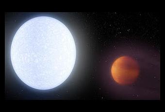Pero volvamos al tema que nos ocupa. KELT-9b está ubicado en la región del cielo que ocupa la constelación Cygnus y su principal característica es que la temperatura superficial ronda entorno a los 4.300º C, unos mil grados menos que el Sol. Entonces, ¿con unas temperaturas tan altas no debería ser una estrella? Para considerarla una estrella debería ser capaz de fusionar en su interior átomos de hidrógeno para obtener helio, acción que se logra con una temperatura de 15 millones de grados centígrados. Así que no, KELT-9b no es una estrella. Su temperatura tan alta se debe a un factor externo, la cercanía a su estrella. KELT-9b es un planeta gaseoso de tipo "Júpiter caliente", es decir, un cuerpo con un tamaño similar a Júpiter, pero que orbita mucho más cerca de su estrella que nuestro vecino del Sistema Solar. Concretamente, el periodo orbital de KELT-9b es de tan solo un día y medio, de modo que su cercanía al astro es muy notable.