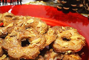 Como habéis leído en el título: un dulce navideño típico de los Países Bajos. Unas galletitas de nombre impronunciable para mí, pero súper crujientes y con un sabor exquisito: caramelo y frutos secos. Imaginaos qué delicia. Bueno, mejor no. Hacedlas y probadlas vosotros mismos, y luego me contáis. Y es que la masa, después del horneado, se torna caramelizada. Lo cual, unido al toque de las almendras tostadas de la superficie, convierten unas pastitas muy sencillas en un dignísimo manjar de dioses. Las kerstkransjes se caracterizan por su forma de corona y se suelen colgar de las ramitas del árbol de Navidad (por cierto, aún no he quitado el mío, me da una pena inmensa este menester, sniff, sniff...)