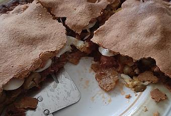 Mezclar los sólidos. Añadir los huevos y hacer una masa homogénea. Dejar reposar en la nevera al menos 1 hora para manejarla mejor (yo le he añadido una cucharada de la grasa que soltó el costillar).