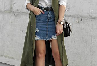 Buenos días amores! Hoy nuevo look desde mi ciudad, Málaga, y vaya diferencia de tiempo tenemos respecto al norte, con lluvia o con sol no bajamos de los 20º. La verdad es que no nos podemos quejar, así que de nuevo a enseñar pierna hasta que el tiempo nos lo permita! porque tengo que decir que odio las medias, cada vez las encuentro más incómodas... Hoy os enseño mi nuevo maxi chaleco kaki. Falda vaquera y camisa blanca, que se transforman totalmente con una prenda como ésta, un chaleco que sin duda aporta un toque muy diferente al look. Y como toque final labios burdeos, (tengo pendiente haceros un post con mis labiales favoritos! jijiji) Espèro que os guste.