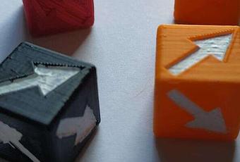 Es un archivo para hacer 1d6, que en las caras, en vez de tener numero o pips, tenga flechas indicando la dirección.Muy útil y en algunos juegos puede hasta servir como sustituto de dados de dispersión, si no se tienen. Lo que sale es un dado 14,4 mm de arista, vertices sin redondear (Tipo "dado de casino").