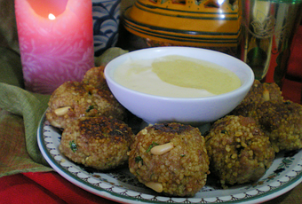 El Kibbeh es como una croqueta rellena elaborada principalmente con carne de cordero y trigo bulgur, además de especias y piñones. En la actualidad existen varientes a la receta original, y así, podemos encontrar kibbeh hecho con ternera en lugar de cordero, con variaciones en la mezcla de especias, en el relleno e incluso sustituyendo el bulgur por arroz o por cuscús.