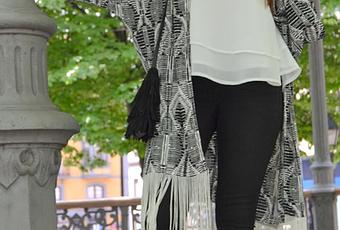 Los kimonos son tendencia, esta prenda tradicional de oriente nos lleva acompañando desde el 2013 y se ha convertido en imprescindible para muchas entre las que me incluyo. Los podemos encontrar en múltiples versiones, largos, cortos, de un sólo color, con estampados florales, brocados, con flecos, sin flecos..... y además nos dan muchas posibilidades de combinación siempre aportando a nuestros looks cierto aire boho y sobre todo desenfadado. Hoy en mi blog os traigo un look con un kimono blanco y negro XXL de la nueva colección de LA FOLIE AVILÉS. Lo combiné manteniendo el binomio de color blanco y negro con un pantalón pitillo negro y una blusa blanca. Qué os parece el look? Kimono: LA FOLIE (aquí)Blusa: LA FOLIE (aquí)Pantalón: LA FOLIE (aquí)