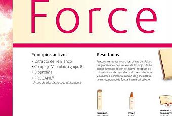Como ya os he comentado, la gama Force está destinada a evitar la caída del cabello, gracias a una mezcla de principios activos que ayudan al cuero cabelludo y a mejorar la microcirculación sanguínea del folículo devolviendole su fuerza interna al cabello.