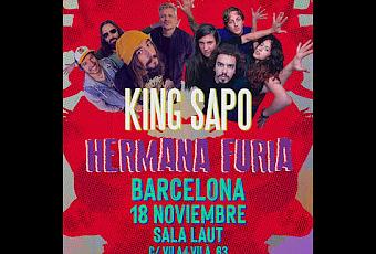 King Sapo y Hermana Furia se unen en la Sala Laut de Barcelona en un directo en eléctrico. Será un doble concierto, una propuesta en Barcelona con dos buenas bandas en eléctrico para mostrar toda la fuerza.King Sapo siguen en un gran estado de forma, llegan a Barcelona presentando su disco Sexo en Marte para mostrar lo que es el rock en estado puro. Herma Furia es otra banda de Madrid, una banda de armas tomar con grandes ideas en lo referido a sus canciones y un gran directo. Llegan a la Laut para seguir de gira.