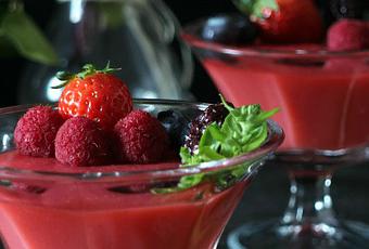 - Frutas del bosque (fresas, frambuesas, arándanos, etc.) y hojas de menta (para decorar)