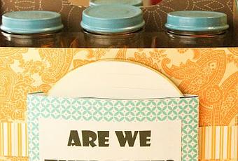 Para terminar, puedes añadirle alguna frase graciosa del tipo "¿falta muchooo?" - o si estás preparando un regalo puedes añadir, por ejemplo, el nombre del homenajeado -, unatipografía bonita, lo imprimes, lo pegas en uno de os bolsillos porta CDs y... ¡ya está!Tenemos el picoteo, tenemos la música...