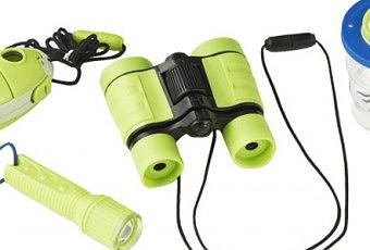 El kit naturista está formado por una brújula para que los niños aprendan a localizar los puntos cardinales y orientarse a través de la interpretación de las coordenadas (con la ayuda de sus padres). Incluye unos prismáticos para poder observar aves o animales, un bote especial para recoger muestras vegetales o de insectos, y una lupa para poderlos ver con más detalle.