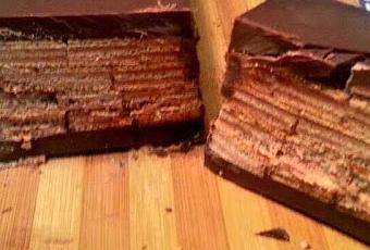 - 500 grs. de chocolate negro- 500 grs de chocolate con leche- 350 grs de galletas de barquillo (rellenas de chocolate)- 200 grs de dulce de leche