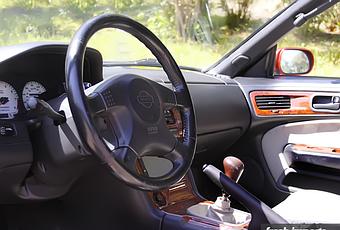 Dicen que la belleza reside en el interior, así que empecemos desde dentro. ¿Os llama la atención algo? Un curioso interior de madera y unos asientos de piel blanca… ¿Originales? Sí amig@s, se trata ni más ni menos que de un Nissan 200SX S14A Racing Edition, un modelo especial que incorporaba estos asientos, que también son calefactables, y el interior en madera. Sólo se pusieron a la venta 800 iguales, y todos en Alemania, de donde proviene esta unidad que fue importada en 2003.