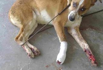 Las imágenes son de la semana pasada. Poco imaginaba KITSU, un cachorrito de unos 8 meses, que su curiosidad y excitación le iba a traer tan desagradables consecuencias. Ante una visita inesperada de unas gentes que pasaron sin aviso a la nave donde están las jaulas de los animales, estos se excitaron muchísimo por las miradas, las palabras, los agasajos. Uno de ellos, un perro con mucha potencia, que lleva mucho tiempo allí se excitó de forma especial. Kitsu en la jaula de al lado, metió su morrito y sus patitas por una rendija que hay entre los separadores. El otro perro le agarró su patita causándole importantes heridas.: Una falange arrancada, otra rota y un profundo desgarro. Ante el insoportable dolor hubo que sedarlo rapidamente y tras la primera evaluación llevarle a urgencias. Allí fué tratado y aunque grave , en un principio aunque va a costar mucho de curar, podrá hacer vida normal en el futuro.