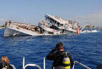 Fue un buque utilizado en el salvamento de marineros durante la Segunda Guerra Mundial, y llevaba diez años en la Reserva de la Flota, desde donde fue remolcado para hundirse en las costas de Caimán y crear un arrecife artificial. La escasa profundidad a la que se encuentra el pecio, lo hace accesible para quien bucee a pulmón. Una atracción turística más en un entorno natural incomparable; valgan las imágenes para sonreir viendo donde querría uno estar, y no está; donde querríamos estar todos, en vez de leyendo este texto con los dientes largos.