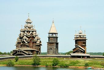 A orillas del lago Onega, en el noroeste de Rusia, se encuentra uno de los recintos eclesiásticos más curiosos del país: Kizhi Pogost, un conjunto formado por dos iglesias y una torre del reloj, muy elaboradas, con la particularidad de que fueron construidas con madera.