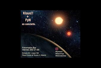 En Fotomatón Bar hay grandes conciertos, noches de pop y noches en las que los proyectos más emergentes pasan a ser proyectos de culto sonoro. Uno de esos proyectos es Klaus!!, un proyecto muy interesante de vertiente pop que no ha dejado indiferente a nadie que les ha visto; pocos temas publicados pero muy intensos. FyN es otro proyecto muy desconocido que hará las delicias de los asistentes.