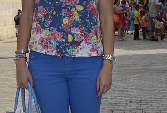 Para este día elegí el pantalón en azul klein que ya han visto en varios posts con camiseta estampada, sandalias blancas y un bolso de esos donde cabe de todo y que me parece muy original, ya lo vieron en este post del año pasado.