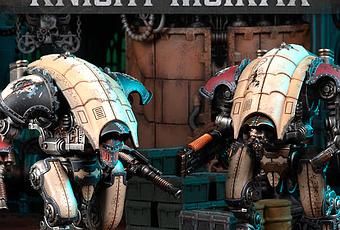 Esta semana no tenemos pre-pedidos en GW pero Forge World si tiene. Se ha sacado en pre-pedidos este fin de semana dos nuevos Knights para sumar a las fuerzas del Mechanicum y de las Casas de Caballería de la Herejía de Horus. Son los nuevos Knight de clase Moirax. Es un kit de plástico y resina (Usa de base el kit de Armiger, al que se le añaden y cambian piezas por otras de resina) y FW nos ofrece un Morirax con Lightning Locks o un Morirax con Volkite Veuglaire y Gyges Siege Claw por 46 euros cada uno, mas gastos de envío. No se incluye la hoja de calcas, pero al menos esta vez nos dejan las reglas para este tipo de Knights en descarga libre, que se pueden descargar directamente desde aquí.