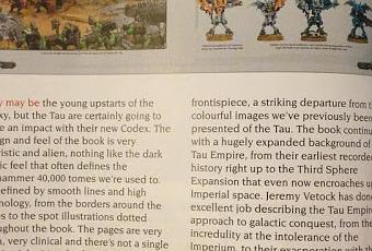 Bueno,al final parece ser que el tema de si Kroot y Vespides iban a estar o no en el codex Tau se puede dar por zanjado:Los Kroot y los Vespides están,lo que pasa es que las renovaciones se han centrado por lo que se ve en los Tau y nada mas que en ellos.Eso no indica que no se saque en un futuro mas o menos lejano un supuesto codex "aliados" para W40K,como se saco en el pasado un libro de ejercito de Mercenarios para WFB.