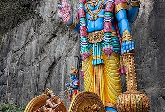 La experiencia. El lugar impresiona: la enorme escalinata de 272 escalones pintados de colores que lleva hasta la gran cueva, presidida por la estatua dorada de Murugan (de más de 40 metros de altura). Dentro se encuentran templos hindúes, altares y un ambiente muy especial.