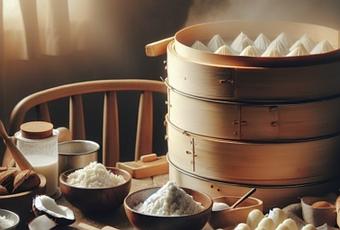 Tiempo de preparación: 4 horas (incluyendo el tiempo de remojo del arroz). Cocinado: 30 minutos.Utensilios necesarios: Molino de arroz (o procesador de alimentos), moldes pequeños, vaporizador.