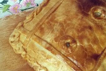 - Pincelar la superficie de la empanada con huevo batido.Hacer unos agujeros en la superficie para permitir que salga el vapor y hornear 30-40 minutos o hasta que la masa haya adquirido un bonito color dorado.