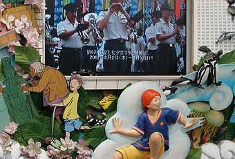 Podemos ver el edificio Sunshine 60 a la derecha, el cual es uno de los símbolos de la zona de Ikebukuro, de el salen algunos peces ya que dentro del Sunshine 60 hay un acuario. También vemos un tren debido a la importancia de la estación de Ikebukuro, la segunda estación mas concurrida de Tokyo, y a una cantante de Opera en referencia al Tokyo Metropolitan Art Space en el cual se hacen este tipo de conciertos. Lo del chico del skate no se el porqué, quizá sea porque sea una zona popular para los skaters pero la verdad es que nunca los he visto por ahí.