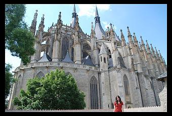 De iglesia en iglesia llego hasta la soberbia catedral gótica de Santa Bárbara, 1388-1905, o lo que viene siendo lo mismo, varias generaciones dedicadas a erigir este templo sagrado. Es Patrimonio de la Humanidad por la UNESCO desde 1992 y fue construida, entre otros, por Matej Rejsek y Benedikt Ried. Me encanta su diafanidad, esas galerías preciosas y los escudos en techo y vidrieras. Mayestáticos son los altares, con esos increíbles retablos barrocos donde comulgan anexionados los negros y dorados en una simbiosis claroscura.Kutna Hora es una ciudad vinculada en su genética a la minería, y así lo demuestra la efigie que hallo de un minero adosado hasta la eternidad a uno de los pilares. Sigo asombrado, descubriendo nuevos tesoros, como las estatuas de madera de seis metros de altura que representan a las cuatro virtudes. Es una obra del año 1620. Todo es atractivo a la mirada de mi objetivo, incluso los recoletos e íntimos confesionarios blanqui-negros.