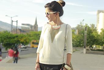 Sweater: Forever 21 / Pencil Skirt: Forever 21 / Oxford Shoes: Bon Bonite / Necklace: Aleph / Bracelets: Azulu / Sunglasses: Forever 21Photos by: Julián Gómez Succo Io Sono to Look at U