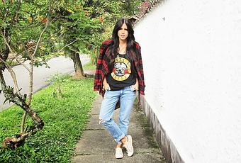 Este look lo use el día de ayer y fue perfecto para hacer varias cosas en un día, trabajar, hacer vueltas, abrigarme si llovía o andar más fresca si hacia sol, como siempre un clima de locos; en cada post les voy mostrando y contando un poco más de lo que me gusta, en el anterior look les mostraba mi amor por las motos vespa aquí lo pueden ver si no lo han visto aun, y hoy les cuento a través de esta camiseta uno de mis otros gustos, si ya sé que no parezco la niña más rocker y no me visto siempre de oscuro pero les cuento que el rock o el rock and roll es lo que más escucho, y unas de esas bandas por las que me muero y dentro de mi producen cosas inexplicables son los Guns N’ Roses, esa mezcla del hard y el blues rock con el clásico rock and roll hace que sea una de mis bandas favoritas de este género. La camiseta la encontré en Forever 21 y no dude ni un segundo en llevármela conmigo, esta vez la complemente con unos boyfriend jeans, tenis y este abrigo a cuadros que me abrigo a la perfección. Que opinan?