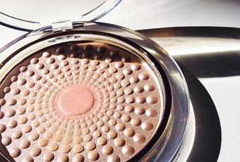 Ya con varios usos, el polvo queda así como lo ven acá abajo; sacrifiqué el mio sacándole toda esa primera capa de shimmer. Se ve un centro rosado, rodeado de un polvo más oscuro en la parte más externa y otro más claro. Aún sin el shimmer, el producto sigue siendo iluminador. No tanto como al principio, pero sigue dando una luminosidad interesante.