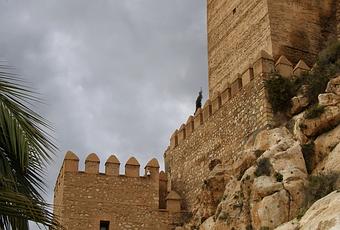 "La Alcazaba de Almería es la mayor de las ciudadelas construidas por los árabes en España. Su construcción fue iniciada en el año 955 por Abderramán III y terminada por Hayrán, rey taifa de Almería, en el siglo XI. Tras la conquista cristiana es reformada por los Reyes Católicos y Carlos I.La Alcazaba de Almería posee tres recintos amurallados, uno de los cuales fue construido por los Reyes Católicos. Fue residencia real y hoy permanece en pie el palacio de Al-Mutasin con todas sus estancias, su mezquita, convertida en iglesia desde finales del siglo XV, y sus baños. Tiene una sola puerta de acceso, casi invisible por las enormes murallas, y amplias estancias de techos abovedados y puertas góticas. Desde lo alto de las murallas de la Alcazaba se pueden observar unas maravillosas vistas de la ciudad y del puerto.Fuente: www.andalucía.org"
