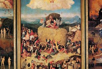 El cuadro que ilustra es una alegoría que representa toda una idea. Es más, se dice que es la recreación de un proverbio flamenco: “El mundo es un carro de heno, del cual cada uno toma lo que puede” (haciendo alusión a las riquezas y placeres terrenales).