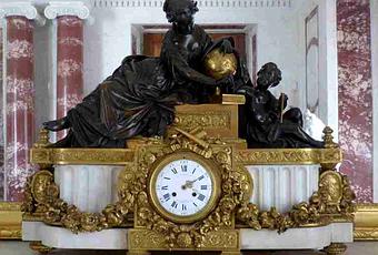 La visita se inicia en las Salas del Baño con azulejos holandeses y termina mostrando un gran reloj mecánico francés de estilo imperio. Una alegoría de la Astronomía en bronce, con esfera astronómica y compás, está acompañada de un amorcillo con tablilla. La portada del libro muestra su autor, Copérnico, y su titulo, El movimiento de los astros.