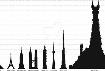 Es una comparativa de altura entre la torre Barad-dûr de Mordor,si esta fuera real, con los edificios y monumentos reales mas altos creados por el hombre. Bueno, la imagen habla por si sola,no?