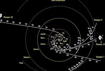 Trayectorias de las sondas Pioneer y Voyager en su camino de salida del sistema solar (click para ampliar)La primera reacción de Anderson fue pensar que su algoritmo había pasado algo por alto. Alguna pequeña influencia en el movimiento de la nave se debía quedar fuera de la fórmula matemática. Después de años de reflexión y discusión le llevaron a la conclusión a él y a su equipo de que la deceleración anómala debía ser provocada por la fuga de combustible de sus propulsores, que ejercía una fuerza de retroceso contra el movimiento de la nave. Puesto que en ese momento la nave avanzaba hacia el espacio interestelar sin propulsión, los científicos pensaron que la fuga de combustible terminaría pronto y que el efecto desaparecería. Pero extrañamente no: en la década siguiente, la sonda Pioneer había acumulado miles de millones de kilómetros, pero una cantidad menor a lo esperado.
