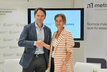 La Asociación Española Contra el Cáncer y el grupo educativo metrodora han firmado hoy un acuerdo de colaboración que permitirá a los alumnos de la vertical de Formación Profesional de metrodora brindar apoyo a pacientes oncológicos, a través de labores de voluntariado de la Asociación.