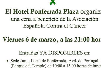 El próximo viernes 6 de marzo el Hotel Ponferrada Plaza será el lugar elegido para celebrar la XIII Cena Benéfica organizada por la AECC León.