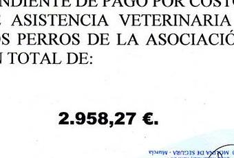 ...Tenemos que pagar una parte de la factura del veterinario de aquí a diez días... y obviamente, desde el 23 de septiembre, y aunque hemos ido haciendo aportaciones... la factura ha seguido en aumento.