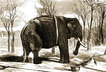 El diario democrático La Discusión, el jueves 6 de abril de 1865, publicaba: “Anteanoche martes 5 de abril á las diez y media de la noche se alarmó el pacífico vecindario que habita en las afueras de la puerta de Alcalá de esta corte. Fué el caso, que el corpulento y feroz elefante , encerrado en la plaza de toros de los Campos Elíseos, incomodado de que sus amos le abandonaran por las noches, rompió las cadenas que le tenían sujeto y, no contento con esta hazaña, se salió de la plaza, rompiendo las vallas, puertas y cerrojos, sin que nada ofreciera resistencia a sus colmillos y trompa“.