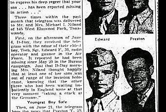 La historia de los hermanos Niland en el periódico “Buffalo Evening News” del 8 de julio de 1944
