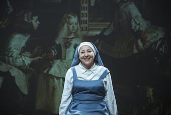 “¿Vemos o nos ven?”, se pregunta Foucault en su ensayo sobre ‘Las Meninas’, consciente de que Velázquez nos asigna “un lugar a la vez privilegiado y obligatorio” en su pintura. Desde el escenario, entre el cuadro y nuestro (elegido) sitio obligatorio, Sor Ángela nos invita a ver su metamorfosis. Estamos en 2037 y gobierna ‘Puebloenpie’. Para pagar los intereses de una deuda insostenible, esta caricatura de Podemos va a vender la obra maestra de Velázquez a una petromonarquía árabe. Así comienza ‘La autora de Las Meninas’, una distopía de Ernesto Caballero que nos alerta de políticos utilitaristas mientras reflexiona sobre los límites de la creatividad. No te fíes de la sonrisa cándida de esta monja que debe copiar ‘Las Meninas’. En el alma de Sor Ángela duerme un ego que el diablo despertará a golpe de tentaciones, en un viaje disparatado e inolvidable a través de las vanguardias del siglo XX. Soy incapaz de imaginarla protagonizada por otra actriz que no sea Carmen Machi. Insuperable.