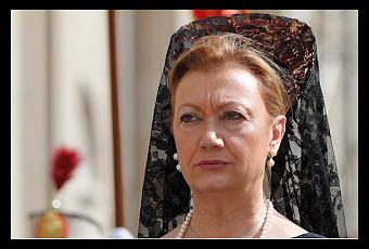 Luisa Fernanda (Rudi) con peineta, en la Plaza del Pilar de Zaragoza.
