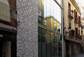 Calle Francisco Pizarro. Anexión, agrandamiento del Museo de Bellas Artes y…¡leche!, pudiéndolo hacer bonito, sencillo, tal fachada de Cubana; elegante, aprovechando la simplicidad de las balconadas propias del Badajoz antiguo, con posibles para recuperar esos miradores acristalados que poseían las casas pudientes de la zona, de esos enrejados que te pasmas mirándolos, de sus hermosos zócalos, de sus falsas sillerías (propias de zonas sin canteras), de seguir remozando el casco antiguo con la misma cordura, la misma dignidad que le han otorgado a nuestra sin par Plaza Alta…van y lo achonan colocándonos una barby de plástico bruto, sin personalidad, en un palacio histórico. Endosándonos un altísimo queso gruller que te hace desear desesperadamente un ratoncito Pérez cobrando vida, saliendo por esos agujeros junto a toda su prole dispuestos a roerse los putos cristales, y si no pueden, al menos cagarse en ellos hasta hacerlos opacos y crear trampantojos de excrementos, que seguro olería menos que el invento perverso que nos han endilgado los superinventores de altas cotas. Y todo esto hablando de un ala del museo, porque si nos trasladamos unos metros más allá, al ladito de la hermosa Ermita de la Soledad, a la vuelta de la esquina, a cuatro pasos del no menos fastuoso frontis de las Tres Campanas, enfrentito justo de la supermega fachada del Conservatorio Superior de Música y del renovado Convento de Santa Ana, ya es dolor de muelas, del malo, del peor, lo que produce. Y digo, pienso…que lo sencillo, además de más bonito, más parejo, más acorde con el entorno, a lo mejor quizá hasta también hubiese resultado mucho más barato, claro que, es lo que tiene el chonismo intrínseco, que encantado de haberse conocido y caiga quien caiga (aunque sea cubos en la alcazaba) no se da cuenta de que desentona a lo bestia con todo el entorno. No obstante, es Badajoz, somos Badajoz y nos encanta construir, luego tirar, pagar caro y, pudiéndolo hacer fácil, regodearnos en crear lo más difícil todavía.