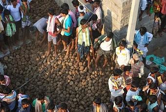 Cada año, la gente de Kairuppala, una aldea en el estado de Andhra Pradesh de la India, se dedica a una batalla épica de la torta del estiércol de la vaca que deja a menudo docenas de heridos. Ellos creen que la tradición les trae buena salud y prosperidad.